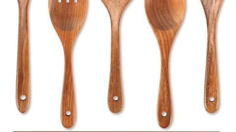 5 PCS Natural Teak Wooden Spoons Set – Smooth, Non-Stick, Comfort Grip